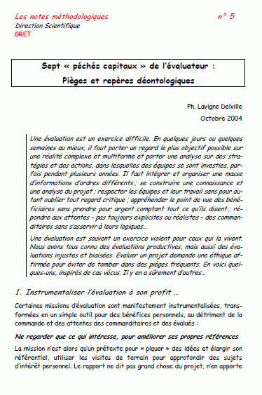 Sept « péchés capitaux » de l'évaluateur : Pièges et repères déontologiques | ||||||