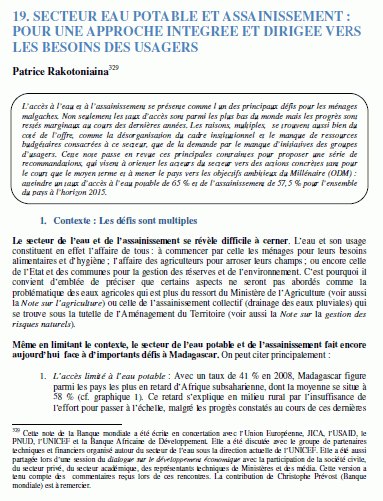 Secteur eau potable et assainissement à Madagascar : pour une approche intégrée et dirigée vers les besoins des usagers | ||||||||