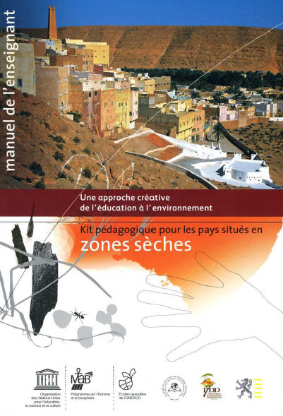 Teaching Resource Kit for Dryland Countries document pédagogique écrit Mar 2009 ; 263 pages Ed. Unesco - Rabat UNESCO - Paris Téléchargeable sous format: PdF Téléchargeable chez l'éditeur Page de présentation d'un éditeur Résumé: Le Programme sur l'Homme et la biosphère (MAB) de l'UNESCO a élaboré un kit d'éducation à l'environnement pour les pays situés en zones sèches. Ce nouvel outil pédagogique est destiné aux enseignants des écoles primaires et secondaires et est basé sur une approche novatrice appelant à la créativité et aux sensibilités artistiques des élèves âgés de 11 à 16 ans. Abstract: This environmental education kit for dryland countries is intended for secondary (and late primary) school teachers and their pupils in countries affected by desertification. The kit offers a creative approach to environmental education and is designed to arouse pupils's curiosity, appeal to their artistic sensibilities, and provide a leverage for better transmission of scientific information and environmental knowledge. Free Internet-based versions in pdf format are available in Arabic, English, French, and Spanish. Publics-Cibles:
