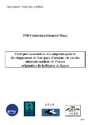 le cas des migrants maliens de France originaires de la Région de Kayes rapport Nov 2004 ; 110 pages Aut. Lisa Gauvrit & Goulven Le Bahers Ed. pS-Eau - Paris Téléchargeable sous format: PdF |