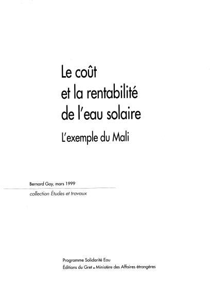 Le coût et la rentabilité de l'eau solaire. L'exemple du Mali | |||||