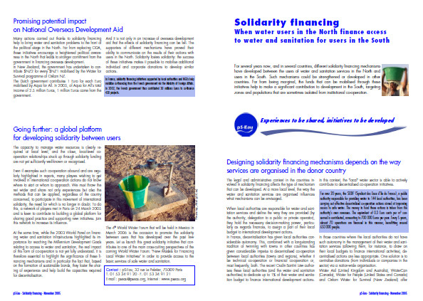 plaquette Oct 2005 ; 4 pages Ed. pS-Eau - Paris Téléchargeable sous format: PdF Financements solidaires