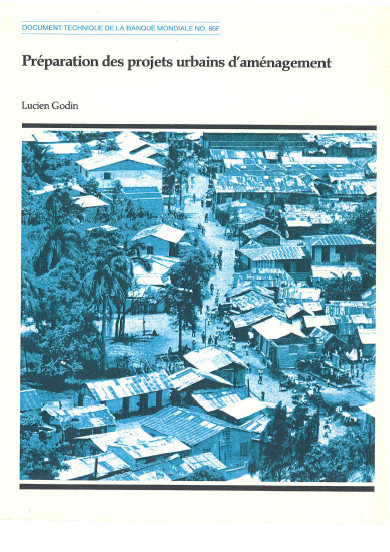 manuel coll. Technical paper n° 66 Jan 1987 ; 242 pages Aut. Lucien Godin Ed. World Bank - Washington Téléchargeable sous format: PdF Téléchargeable chez l'éditeur Résumé: Ce manuel décrit la préparation de projets de développement urbain avec de nombreux partenaires locaux. Une étude de cas imaginaire (Camato) montre les différents éléments et thèmes à adresser. Ce manuel est employé dans des cours de formation pédagogique sur le développement urbain. Sommaire: Il fait référence à 11 éléments: 1. Le contexte des projets urbains 2. Le cycle du projet (méthodologie) 3. L'enquête socio-économique 5. Le site et son aménagement 6. Normes et niveaux de services : plan d'aménagement 7. Calcul des coûts et accessibilité financière 8. Financement du projet 9. Analyse institutionnelle et montage du projet 10. Analyse économique du projet 11. Mise en œuvre du projet Publics-Cibles:
