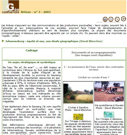 Johannesburg : équité et eau, une étude géographique