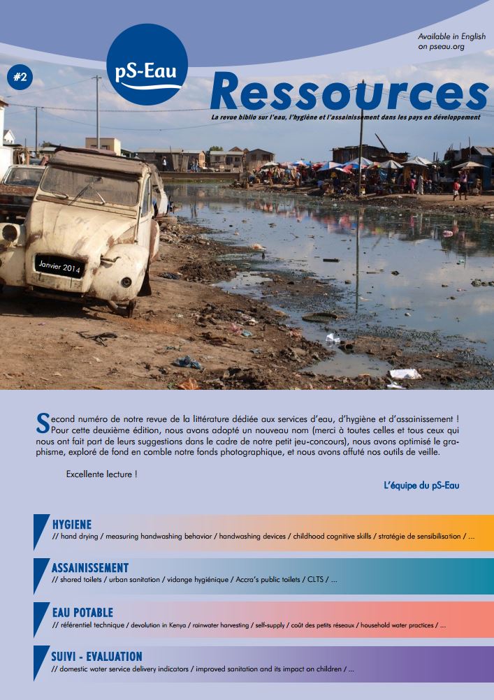 Ressources, la revue biblio du pS-Eau Resources #2 La revue biblio sur l’eau, l’hygiène et l’assainissement dans les pays en développement revue coll. Ressources n° 2 Mar 2014 ; 6 pages Ed. pS-Eau - Paris Téléchargeable sous format: PdF