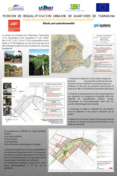 Poster présentant le résultat de l'étude pré opérationnelle pour la requalification d'un quartier urbain dans la Communauté Urbaine de Toamasina.