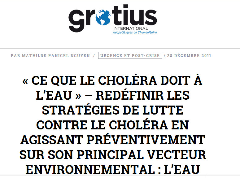 Ce que le choléra doit à l'eau – Redéfinir les stratégies de lutte contre le choléra en agissant préventivement sur son principal vecteur environnemental : l'eau contaminée