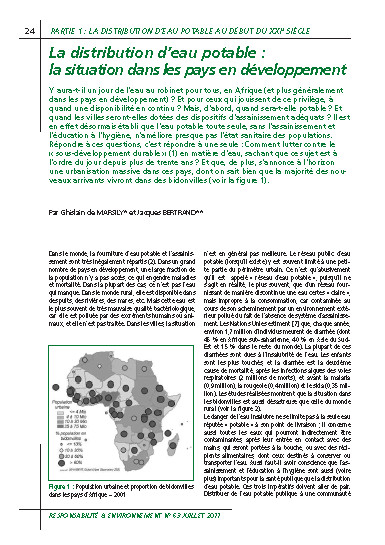 La distribution d'eau potable: la situation dans les pays en développement