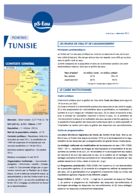 note coll. Fiche-Pays Dec 2014 Ed. pS-Eau - Paris Téléchargeable sous format: PdF Publics-Cibles: Collectivité , Tout public , Acteurs de coopération , Décideurs locaux ou nationaux