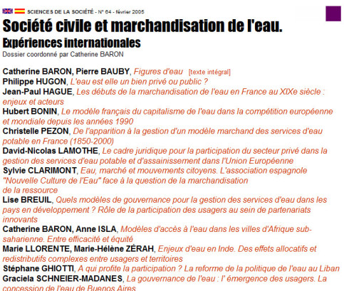 Graciela SCHNEIER-MADANES, La gouvernance de l'eau : l' émergence des usagers. La concession de l'eau de Buenos Aires