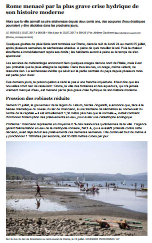 Rome menacé par la plus grave crise hydrique de son histoire moderne