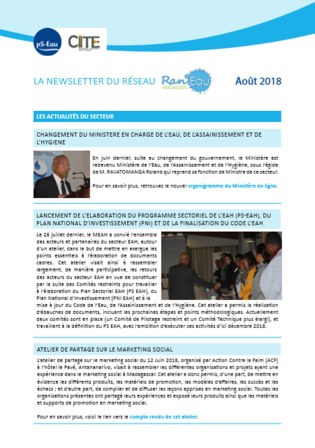 lettre d'information coll. Newsletter du Ran'Eau n° 201808 Aug 2018 ; 8 pages