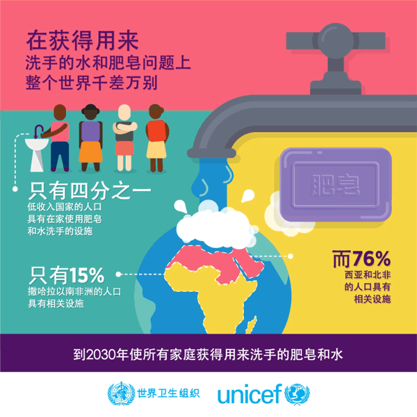 Soap and water for handwashing Agua y jabón para lavarse las manos توفير المياه والصابون بحلول 2030 使所有家庭获得用来洗手的肥皂和水 affiche, aide visuelle Nov 2017 ; 1 pages Ed. WHO - Genève Téléchargeable sous format: PdF Téléchargeable chez l'éditeur