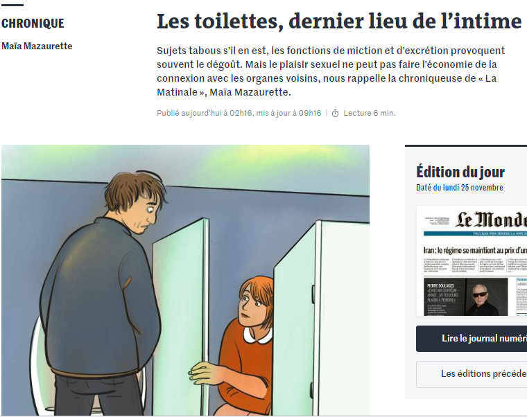 Etes-vous en train de lire cette chronique aux toilettes ? Aucune honte à l’admettre : 40 % des Français consultent les informations au petit coin, selon un sondage Plyce publié en 2013. Ma question vous a-t-elle embarrassé ? On touche là, sans doute, au dernier tabou.