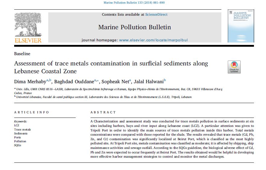 Assessment of trace metals contamination in surficial sediments along Lebanese Coastal Zone | ||||||