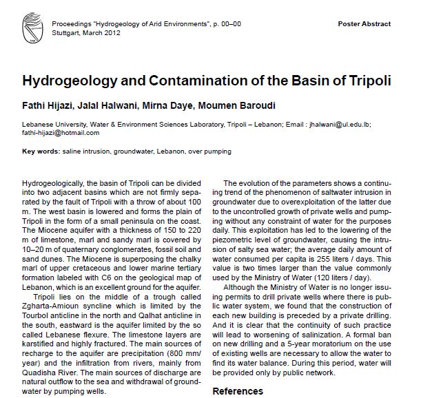 Hydrogeology and Contamination of the Basin of Tripoli -Abstract | ||||||