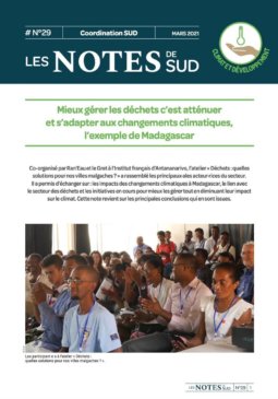 note Mar 2021 ; 5 pages Ed. GRET - Antananarivo GRET - Nogent sur Marne Coordination SUD - Paris Téléchargeable sous format: PdF Téléchargeable chez l'éditeur Résumé: Le secteur des déchets est à l’origine d’une part non négligeable des émissions globales de gaz à effet de serre (environ 3% en Europe en 2017) et représente donc un enjeu important pour la transition écologique. Dans les pays en développement, la difficulté pour les collectivités de mettre en place des filières de collecte et de gestion des déchets efficaces est à l’origine de nombreuses pratiques autonomes non encadrées qui entraînent des impacts négatifs sur la santé, l’environnement et le climat. Améliorer cette gestion, c’est donc apporter de nombreux avantages sociaux, économiques et environnementaux au travers, notamment, d’opportunités en termes de valorisation matière ou énergétique. Cette note aborde ces sujets et revient sur les principales conclusions de l’atelier « Déchets : quelles solutions pour nos villes malgaches ? », co-organisé par Ran’Eau et le Gret à l’Institut français d’Antananarivo. Parmi les sujets traités, les impacts des changements climatiques à Madagascar, le lien avec le secteur des déchets et les initiatives en cours pour mieux les gérer tout en diminuant leur impact sur le climat.