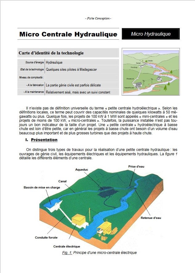 Micro Centrale Hydraulique (fiche de conception) | ||||||||