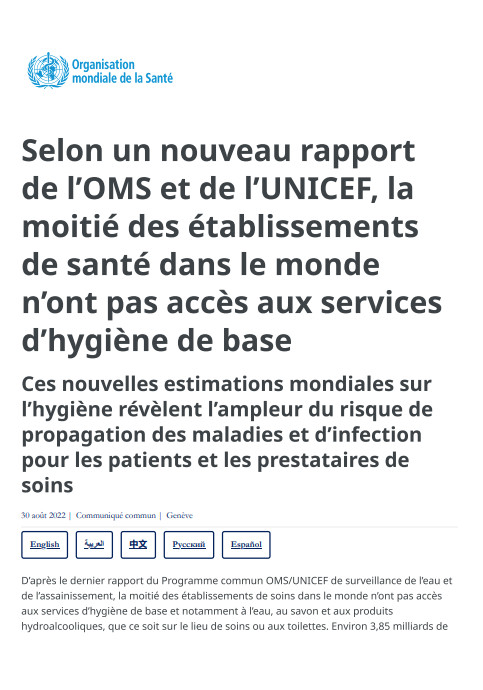 Selon un nouveau rapport de l'OMS et de l'UNICEF, la moitié des établissements de santé dans le monde n'ont pas accès aux services d'hygiène de base | ||||||
