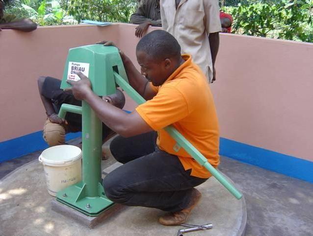 Pose de la pompe Briau par l'installateur agréé (©photo: Lumière du Monde)