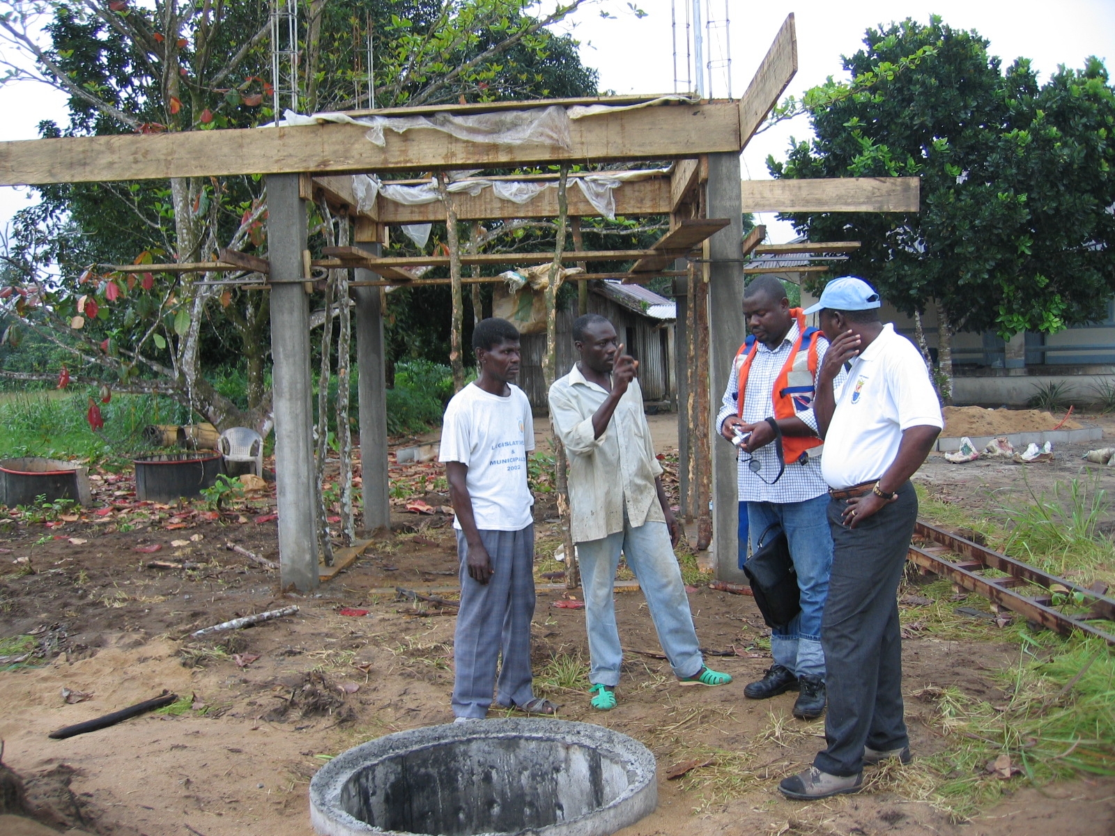 Chantier de construction d'un réservoir (château d'eau) à proximité d'un puits (©photo: JP. David AIMF)