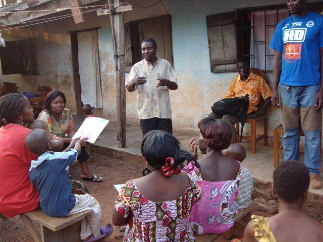 Formation de formateurs locaux à l'hygiène à partir de supports visuels adaptés (© Enda)