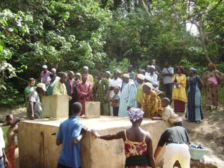 Source aménagée de Barriyiré dans le quartier Koliady II qui fait l'objet de désinfection des seuls volumes d’eau à usage alimentaire par chloration contrôlée (©photo:Coopération Atlantique-Guinée 44)