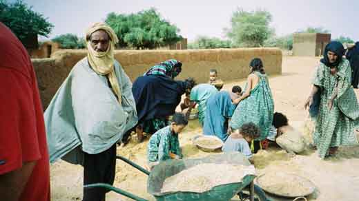La terre extraite est récupérée par les enfants qui la ramèneront dans leur famille pour d'autres usages.
