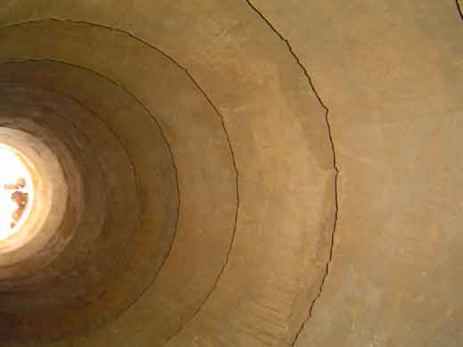 Bien sûr personne ne résiste au plaisir de descendre au fond, la descente étant facilitée par le fait que l'empilement des anneaux forme un escalier.