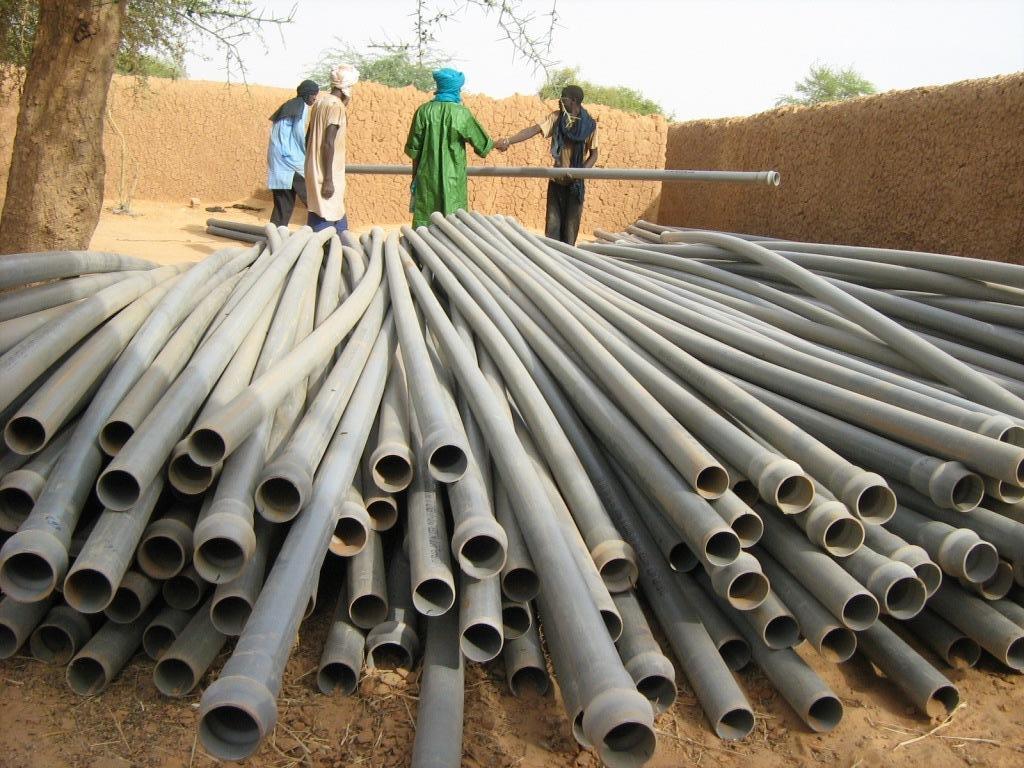 Vue du stock de tuyaux en pvc, qui seront déposés dans les tranchées.