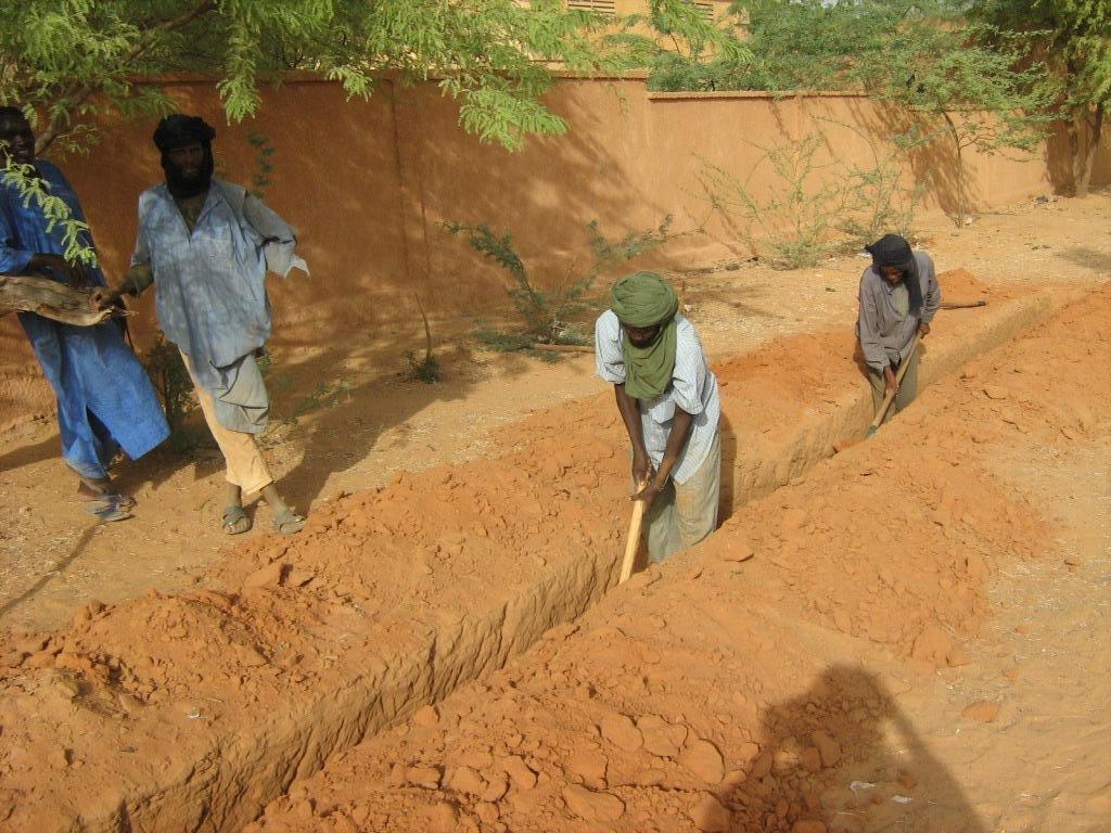 Les terrassiers creusent les tranchées dans une rue de la commune d'Anderamboukane. (©photo ACJL Laxou)