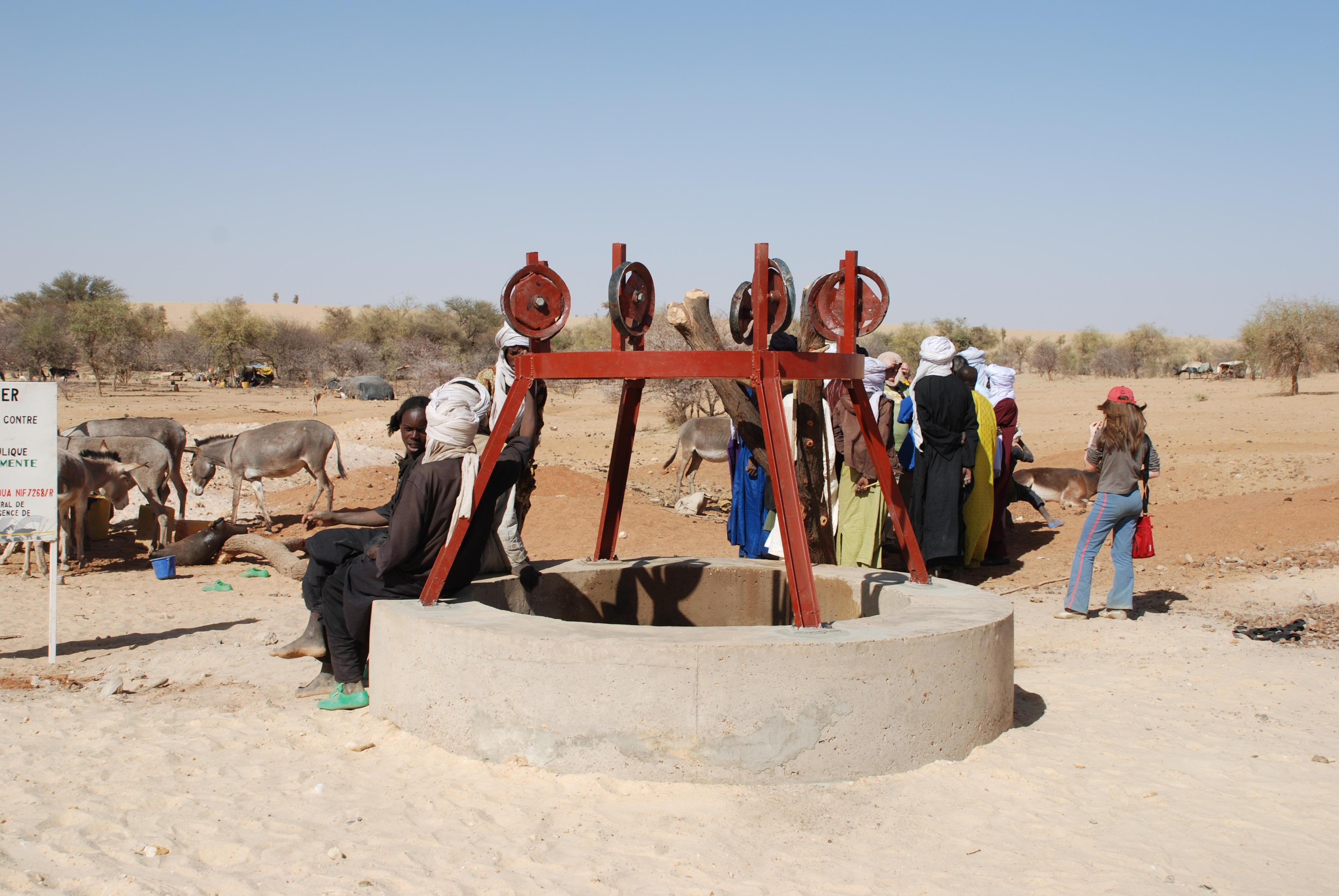 Le puits avait été équipé de poulies métalliques. Mais le système est maintenant abandonné, et on est retourné aux poulies traditionnelles en bois (car l'acier coupait la corde, et il y avait des difficultés à trouver un atelier de soudure électrique en cas de casse métallique)(©photo: Areed)