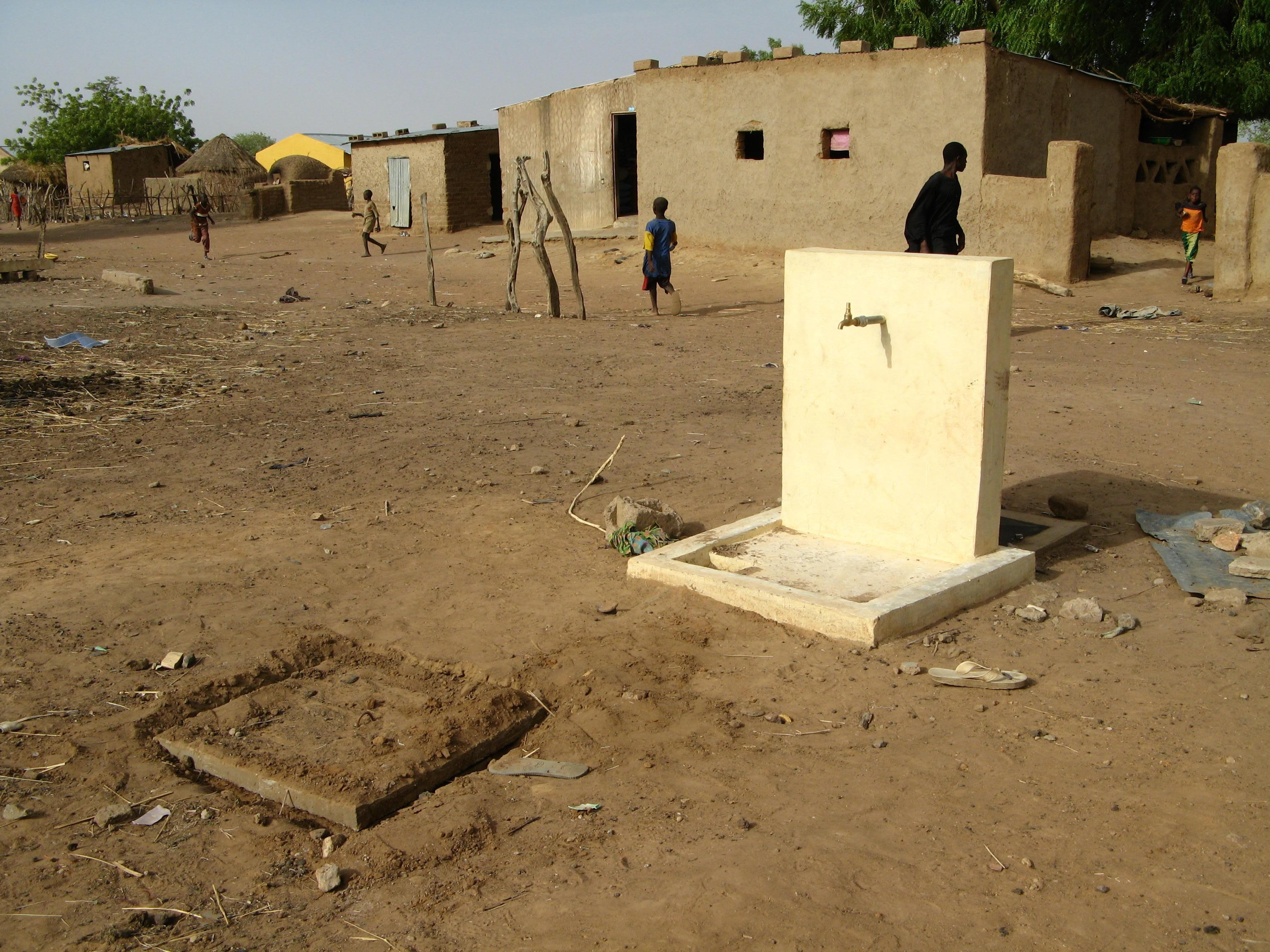 Le point d'eau moderne au centre de l'espace public (©photo: pS-Eau)