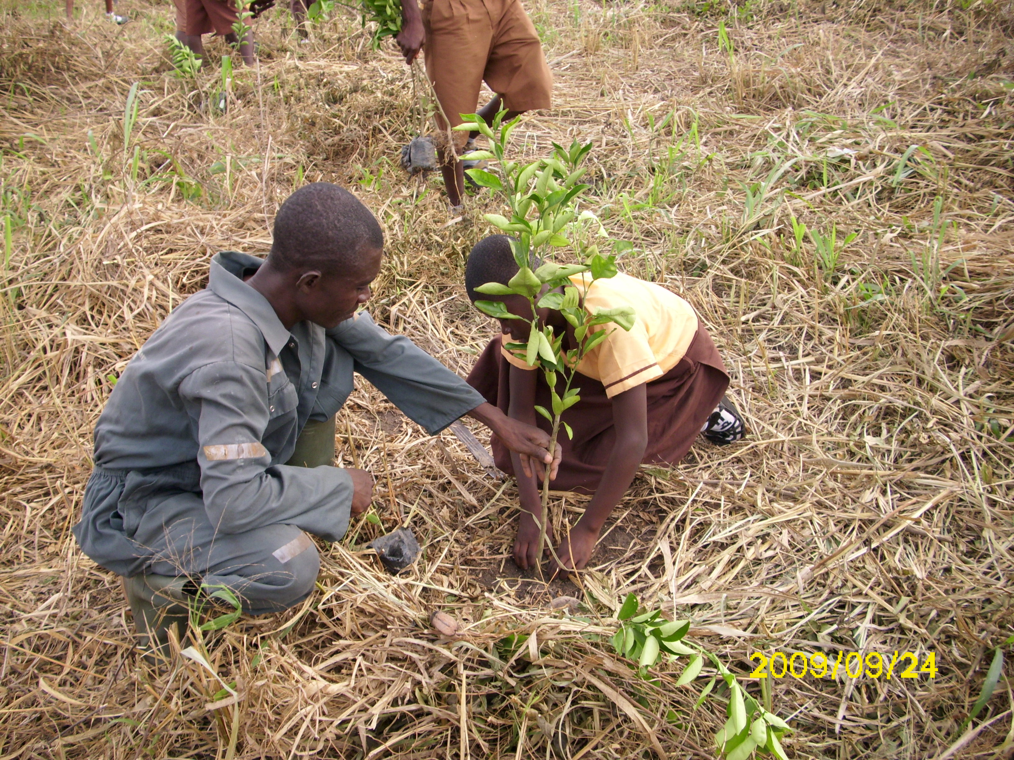 Un des élèves en train de planter son arbre - un oranger. Chaque enfant plante son arbre à l’école. Il en est le propriétaire et le responsable. (@Irha)