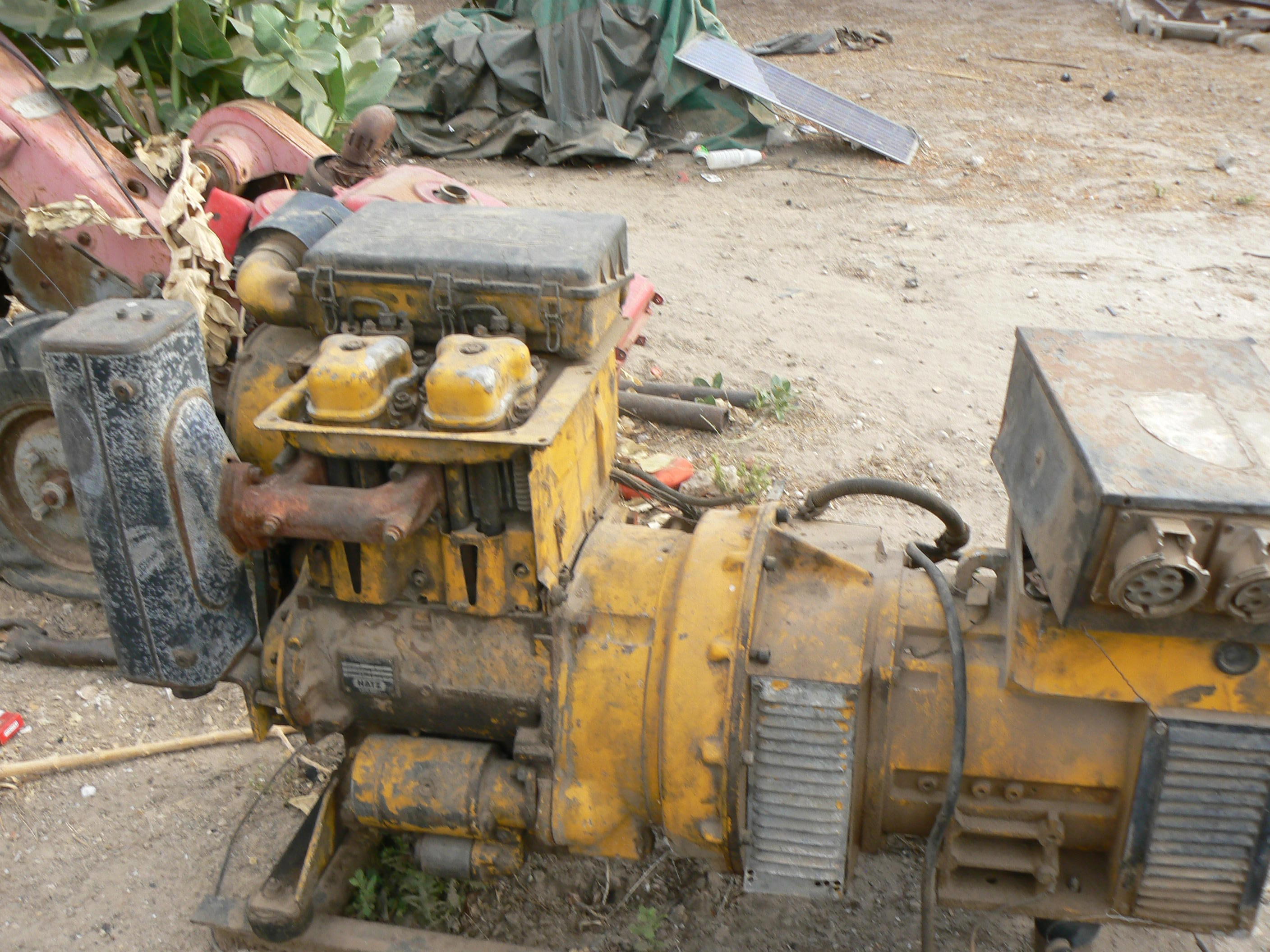 Groupe électrogène en panne, servant normalement à alimenter la moto-pompe électrique d'un forage. (©photo: Caritas Kaolack) Groupe électrogène en panne (moteur diesel bicylindre + alternateur), servant normalement à alimenter la moto-pompe électrique d'un forage. (©photo: Caritas Kaolack)