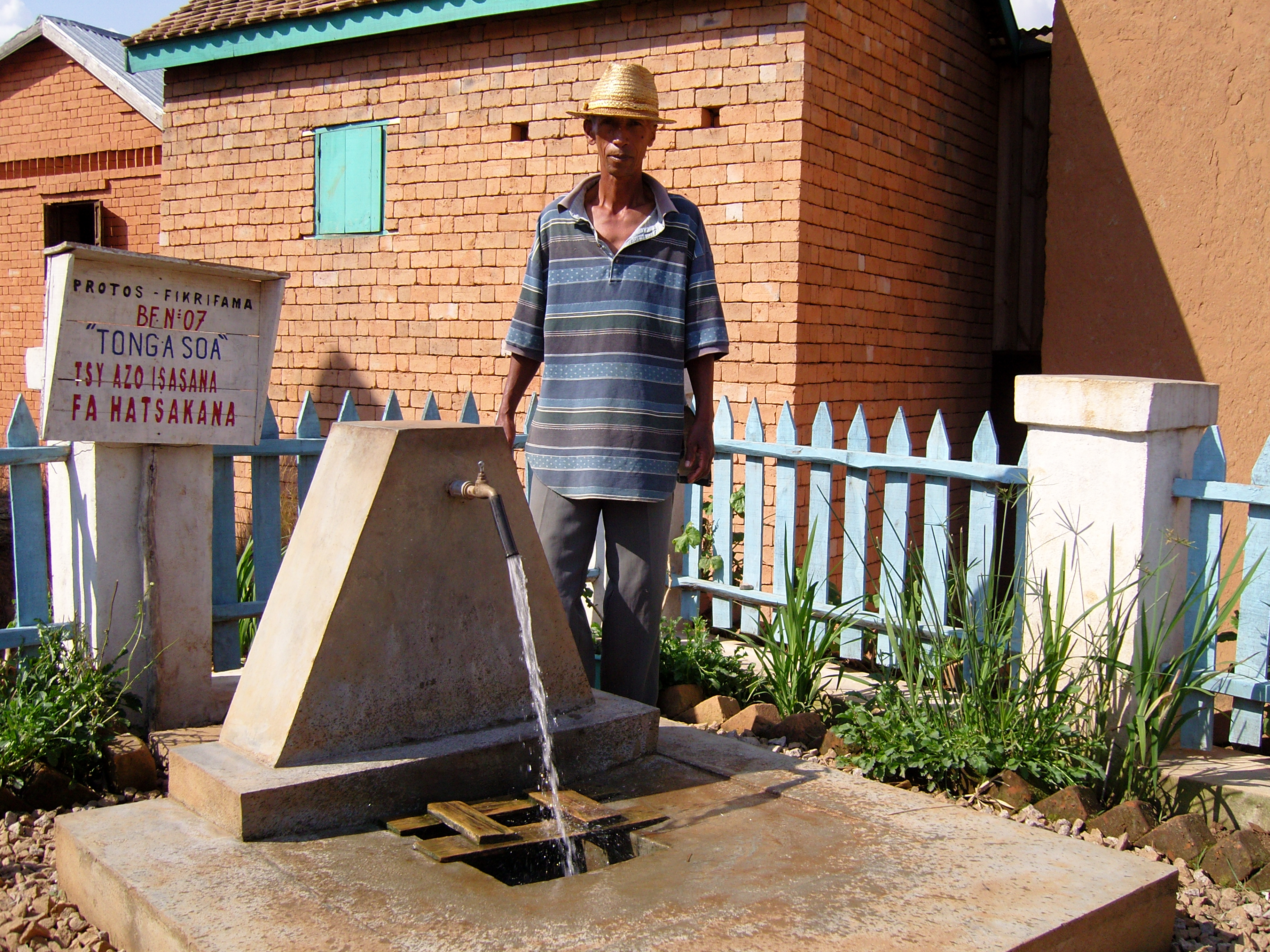 Responsable d'une borne-fontaine construite par l'ONG malgache Fikrifama dans la commune de Fiadanana. (© V. Dussaux - pS-Eau)