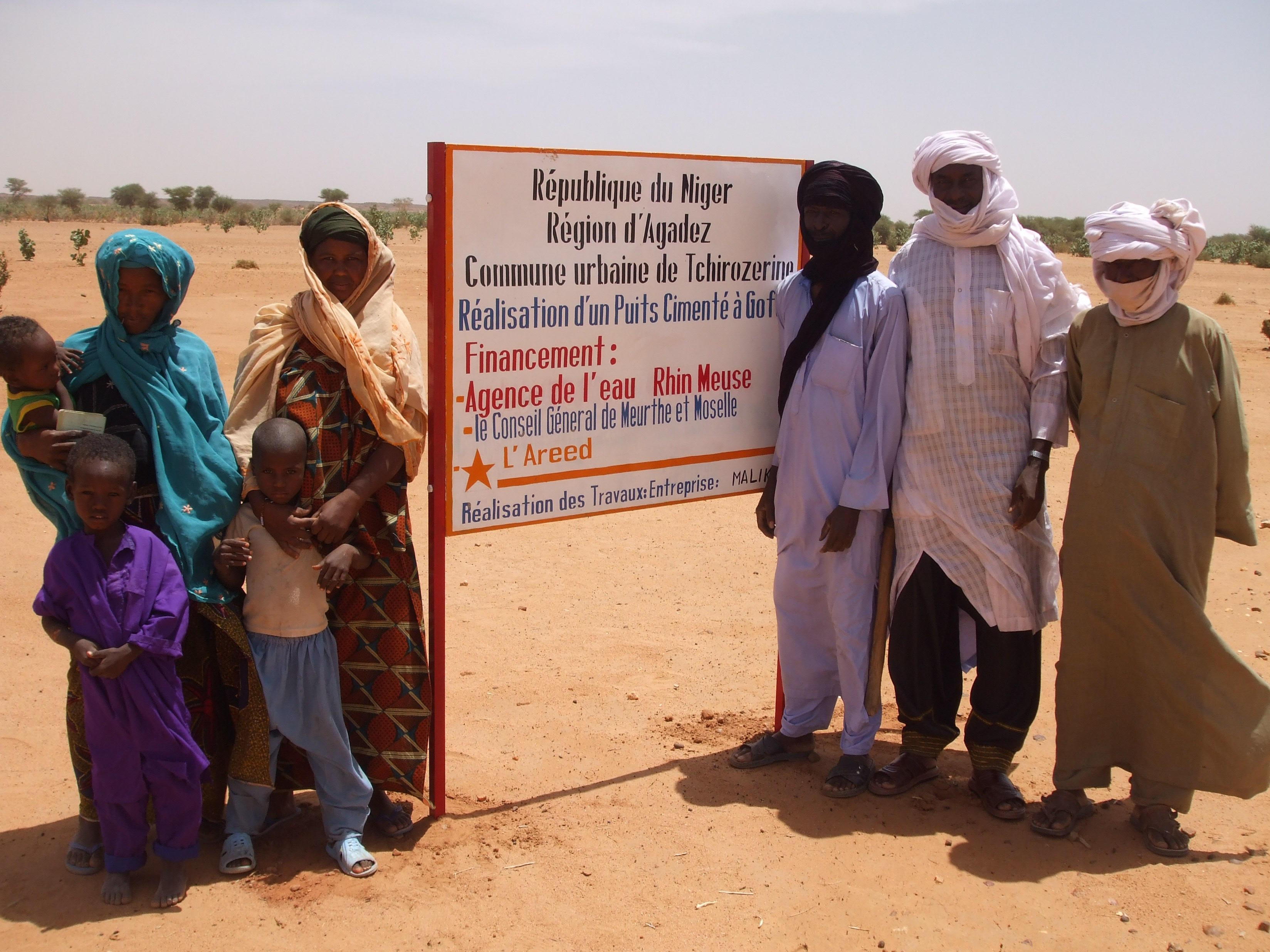 Villageois autour du panneau du chantier (®photo: Areed)