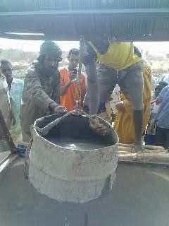 "Benne" emplie de béton, prête à être descendue en fond de puits. (©photo: Areed)