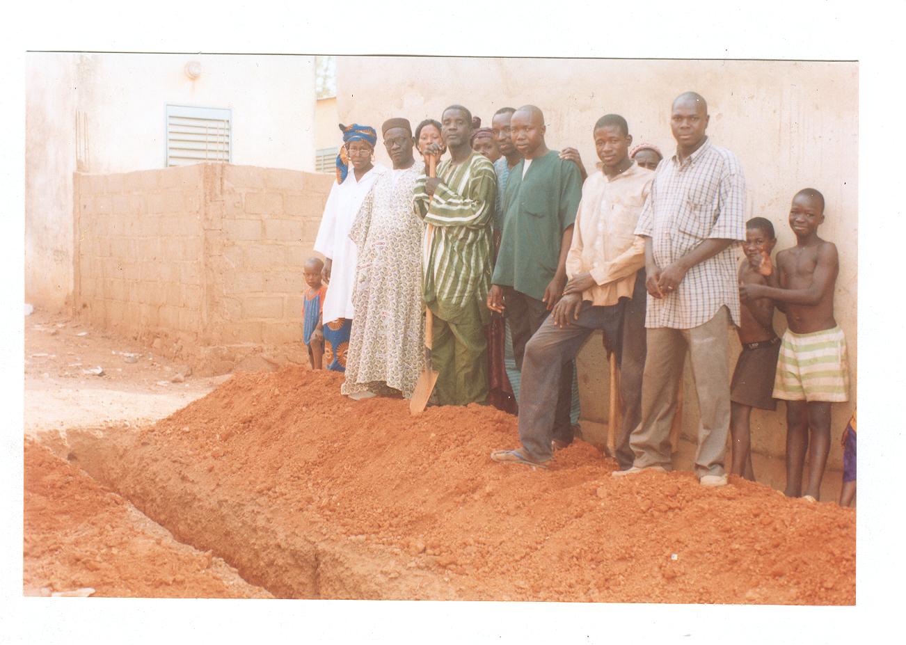 Terrassiers et notables posant devant la fouille de la tranchée pour l'adduction d'eau