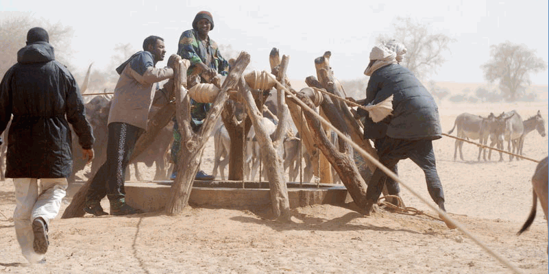 Affluence autour du puits en activité