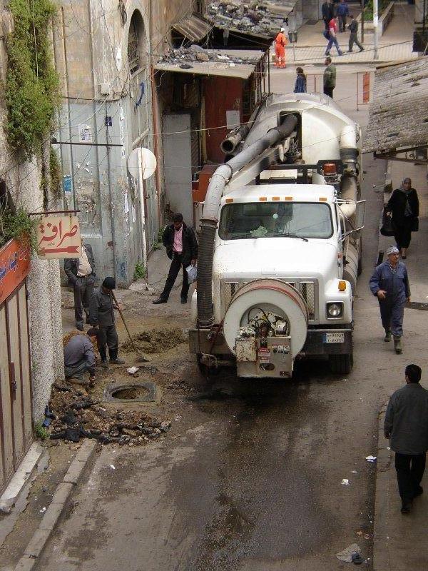 Curage du réseau d'assainissement dans la ville de Tripoli au Liban (©photo: Nicolas Gloppe)