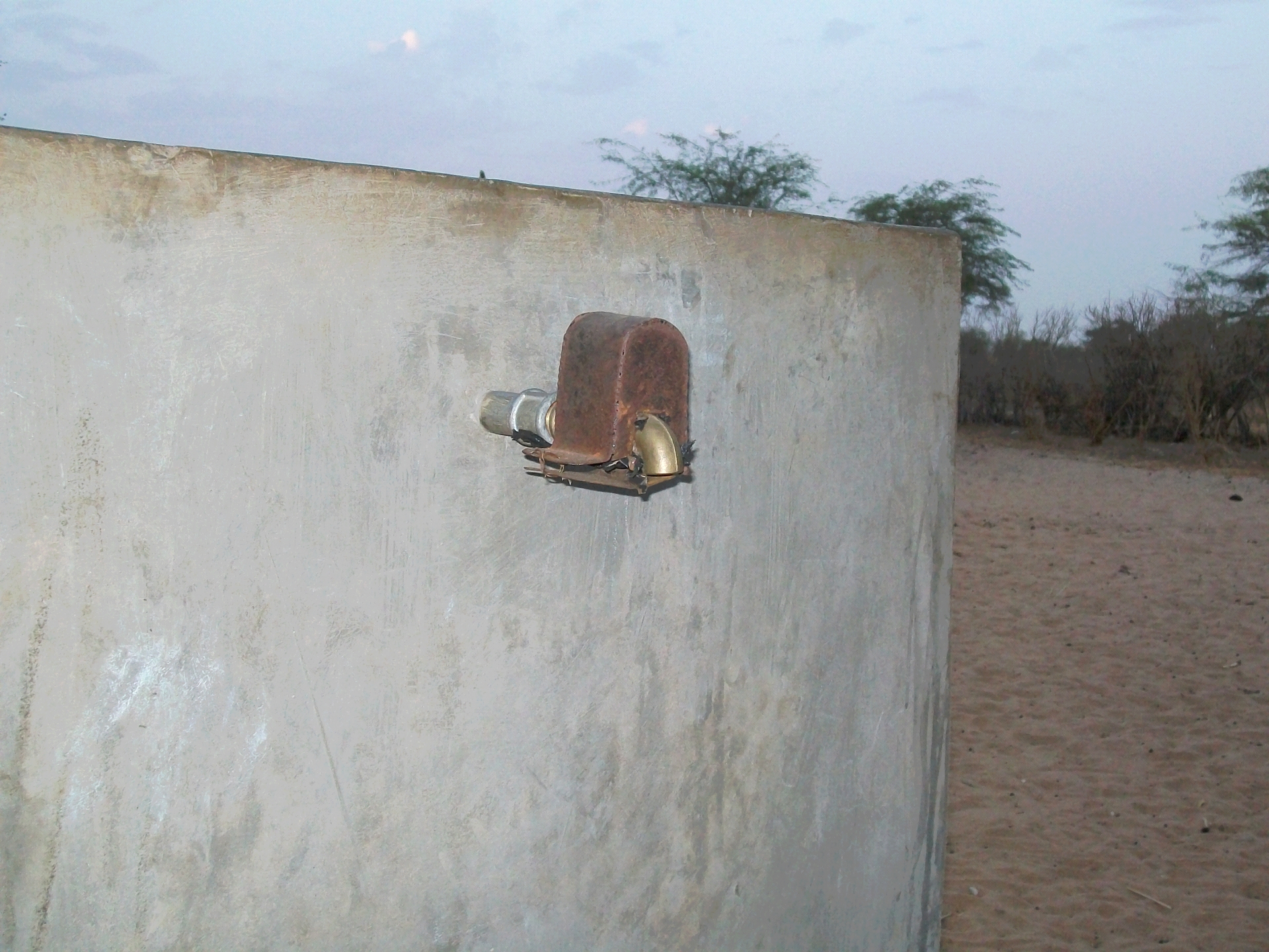 Borne fontaine protégée par un cadenas (©photo: Jumelage Malemort-Sakal)