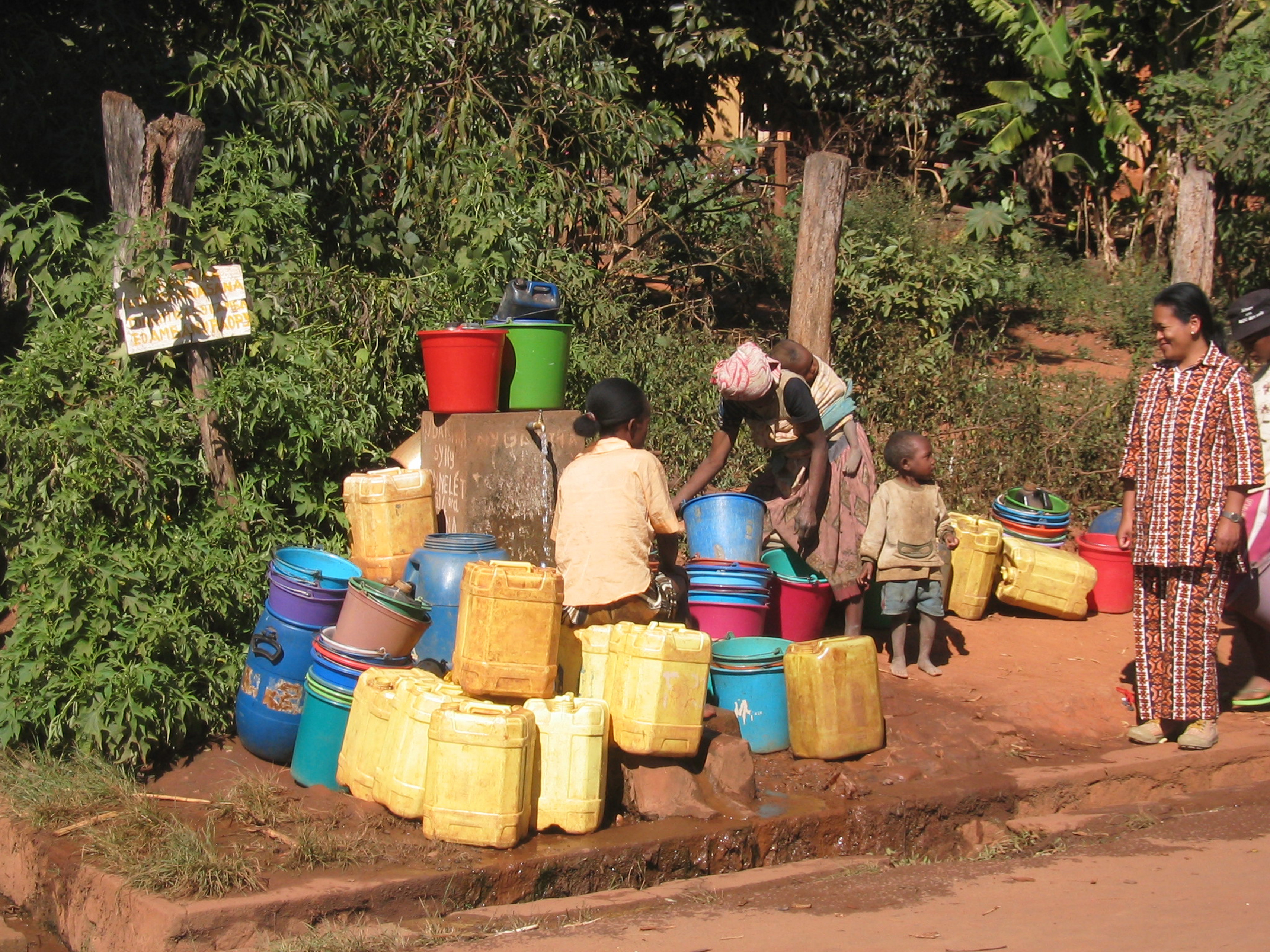 Bidons en attente à une borne fontaine publique d'Ambalavao (©photo: Vincent Dussaux)