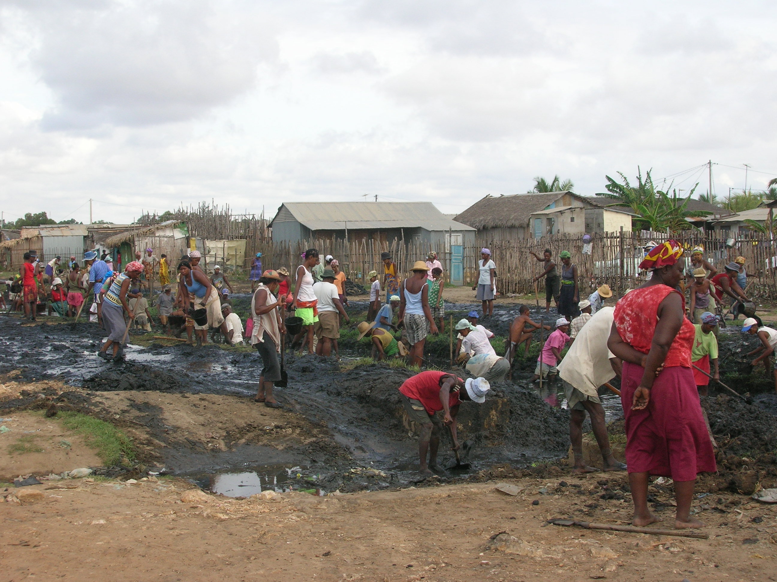 Opération de curage du canal principal avant la saison des pluies, menée par la population concernée par les inondations. (©photo: Ircod)