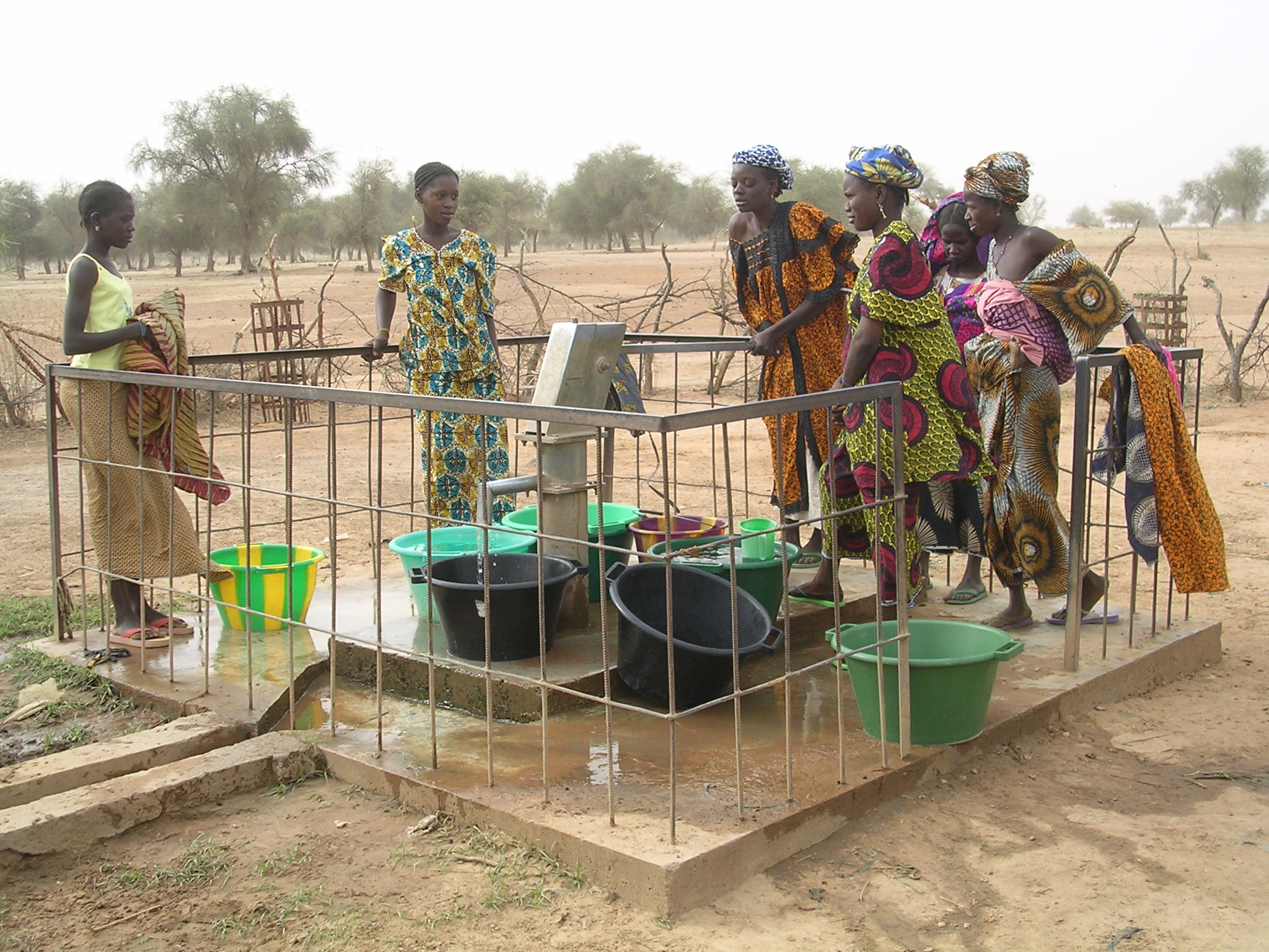 Pompe manuelle et forage aménagé (©photo: pS-Eau)