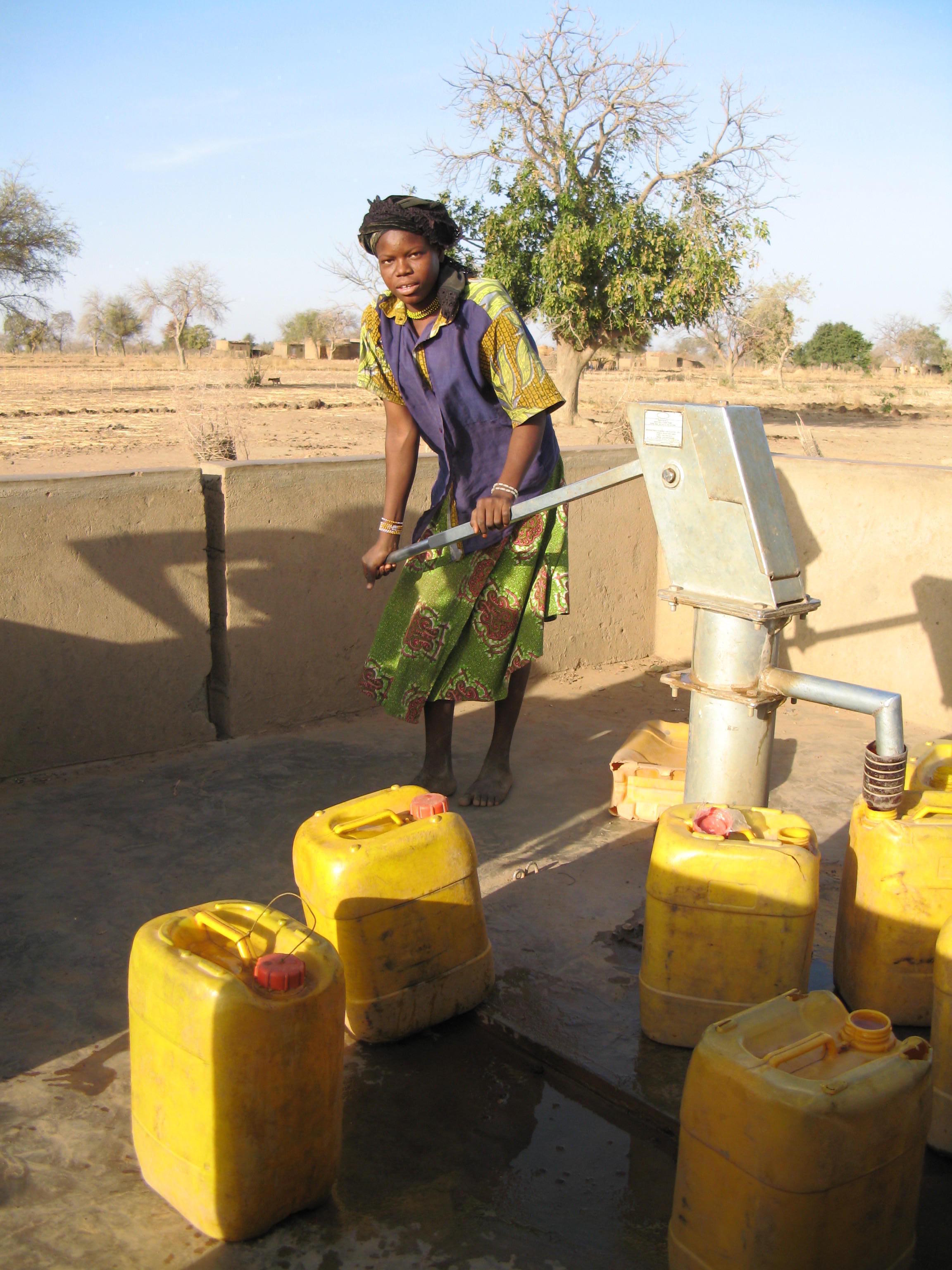 La pompe manuelle en action sur le forage de Nagréongo - 2006