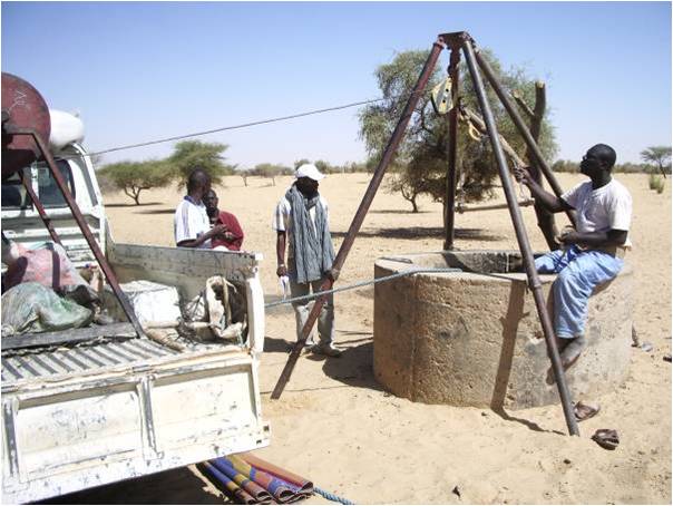 Exploration d'un puits par l'équipe PPT, les services de l'hydraulique, le puisatier et son équipe lors de la phase d'études (©CARE)