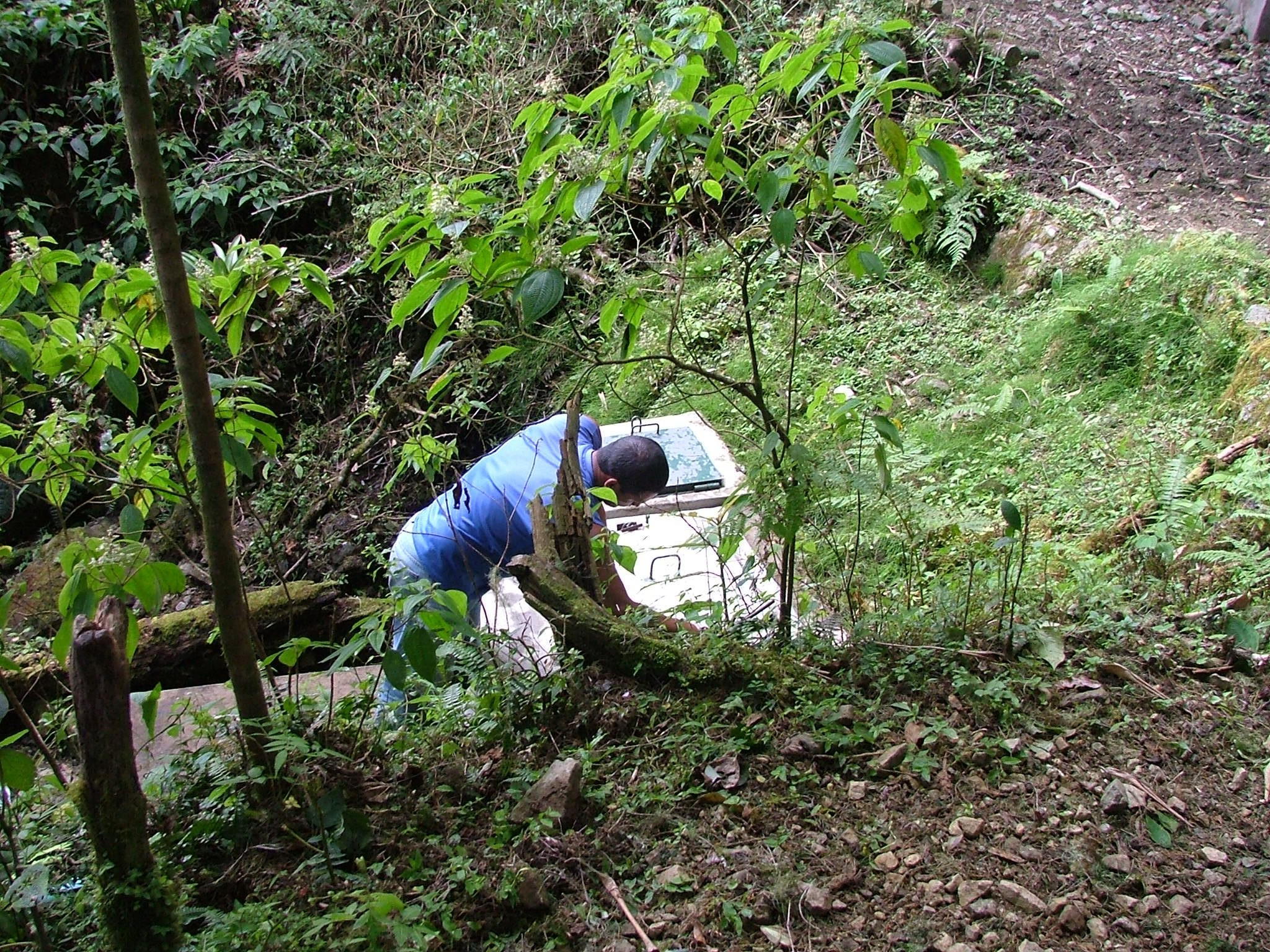Maintenance d'un captage de sources par un agent de la Sada (assoc. gérant la distribution d'eau à Tarbaca)(©photo: Areed)