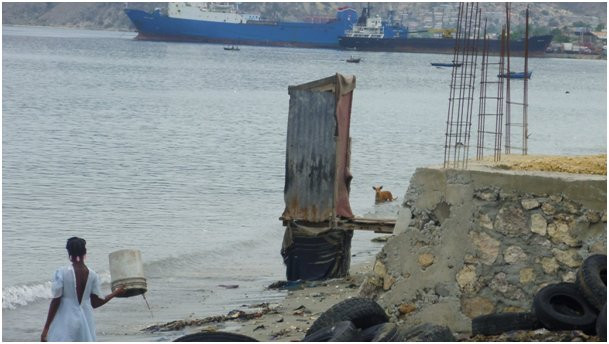 Les latrines simples et fosses fixes, surdimensionnées pour retarder le besoin en vidange, composent la réalité des installations domestiques d'assainissement dans ces zones urbaines, et ceci pour la moitié de la population qui en est pourvue. La gestion des excrétas qui en découle n'est pas organisée et encore moins encadrée. Elle est en général assurée manuellement par des vidangeurs informels qui, faute de site de déversement dédié, rejettent les matières extraites dans la mer ou dans des terrains vagues à proximité. Les eaux grises suivent les cheminements pluviaux, étant majoritairement déversées par les ménages dans l'arrière-cour de leur maison, les rues ou les caniveaux latéraux ouverts, qui sont faiblement entretenus et se transforment en foyers infectieux en période de sécheresse. Ces pratiques favorisent la propagation de la pollution et du risque épidémique de choléra, via l'infiltration des eaux contaminées dans les zones d'habitation et dans la nappe phréatique.