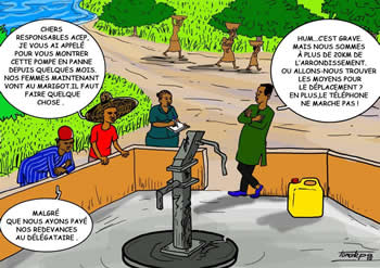S'il faut se féliciter des premiers résultats obtenus dans certaines localités, reconnaissons que les débuts de cette expérience ont été difficiles pour les communes. Avec des membres pour la plupart analphabètes, les tâtonnements et parfois une mauvaise compréhension des rôles de chacun étaient inévitables. Certaines communes, où le suivi des ouvrages n'est pas encore effectif, utilisent les membres ACEP pour s'informer des pannes qui surviennent au niveau des ouvrages. Des membres ACEP, en l'absence des animateurs sociaux des ONG dont les contrats n'ont pas été renouvelés après le retrait des partenaires techniques et financiers, deviennent des animateurs de fait au service des mairies.